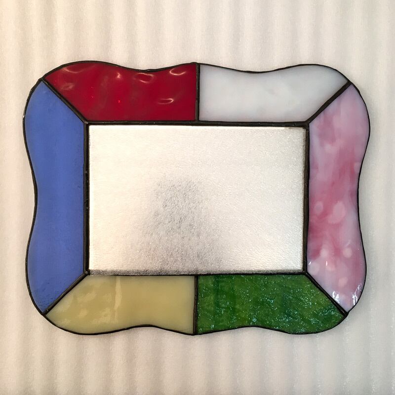 カラフルな色ガラスでお部屋の飾りにもなるミラーです。