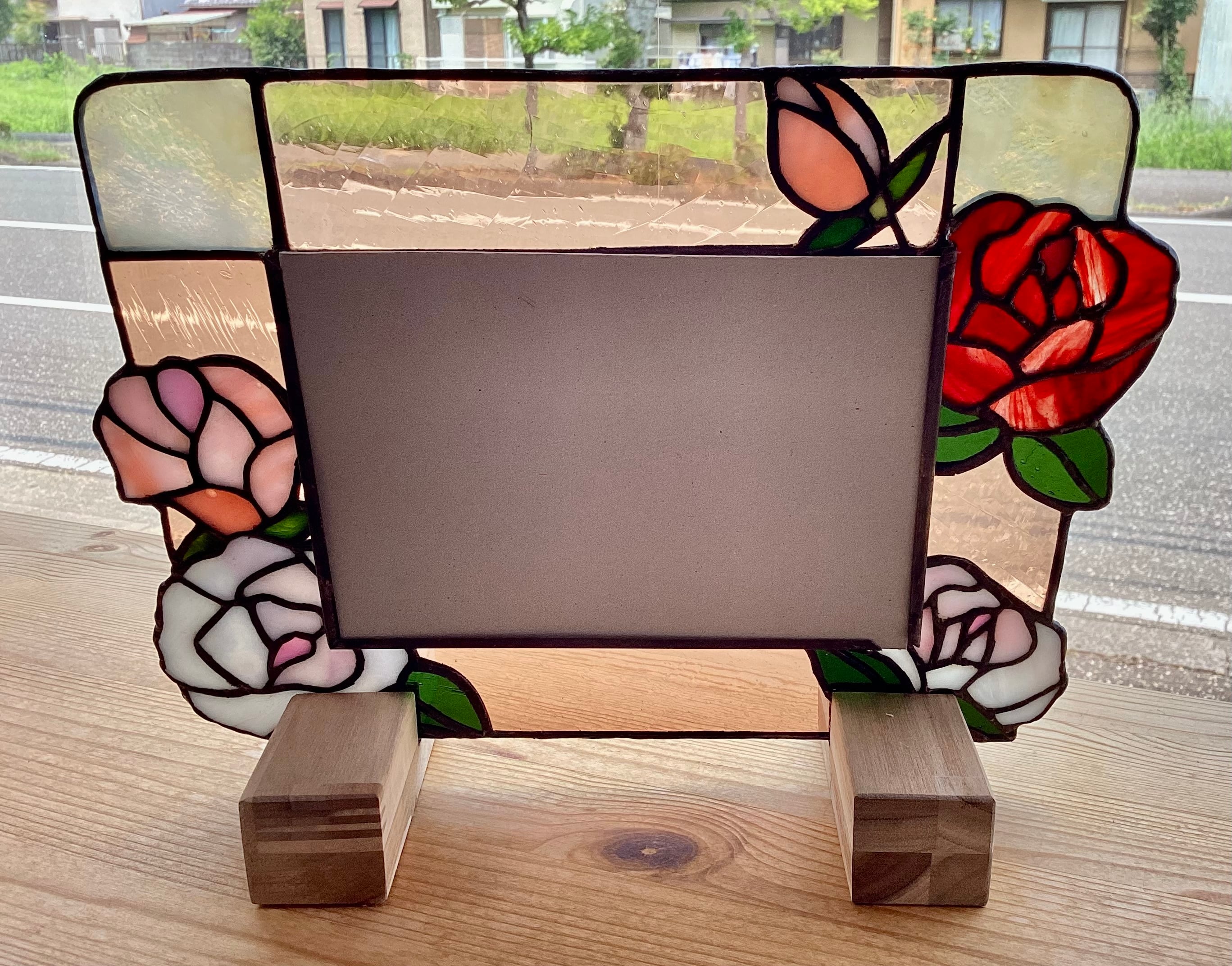 【 ステンドグラス 】写真たて バラ TI