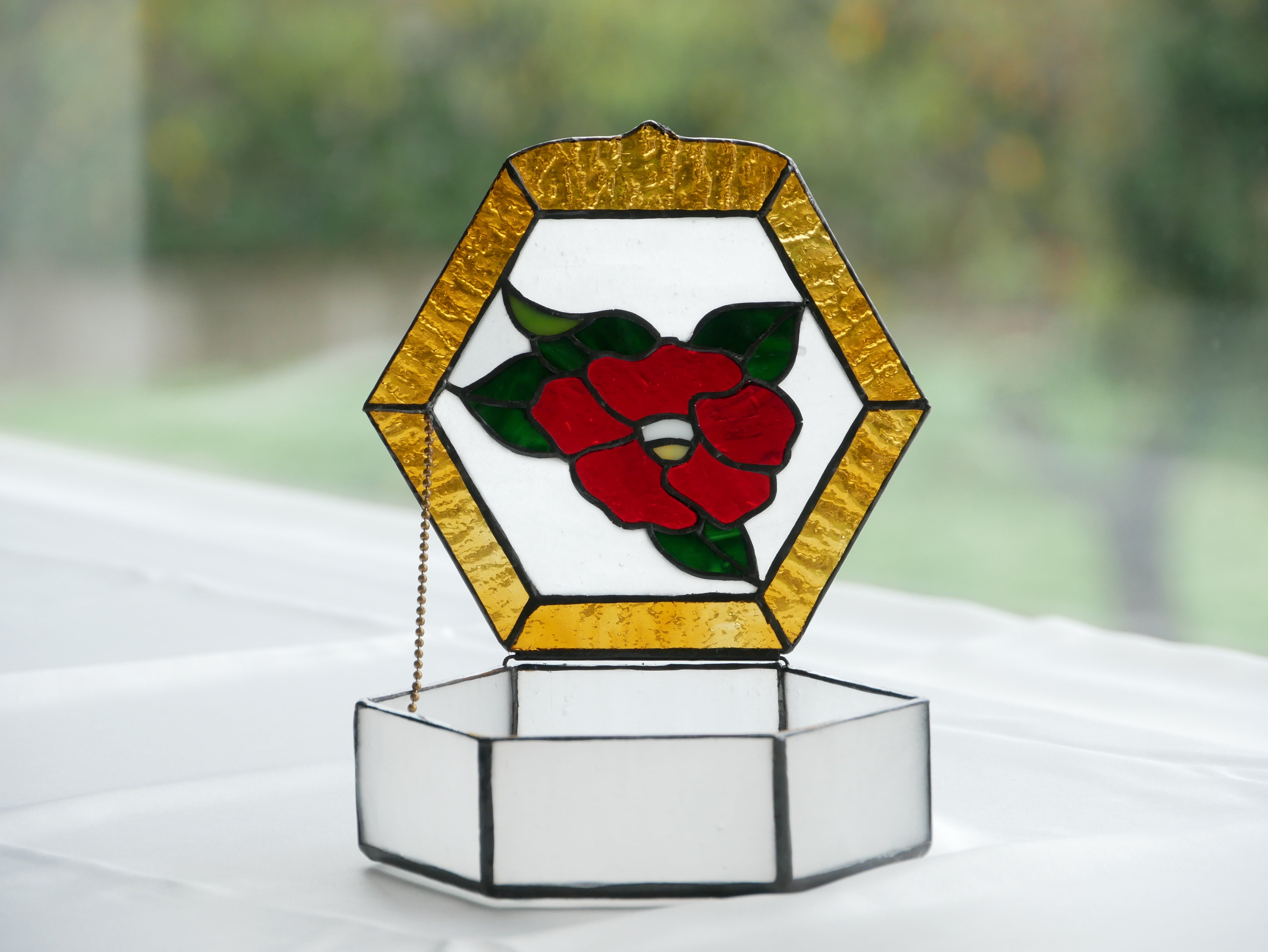 【 ステンドグラス 】ジュエリーボックス(椿) AM
